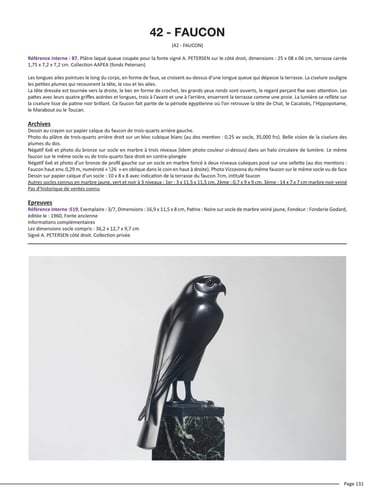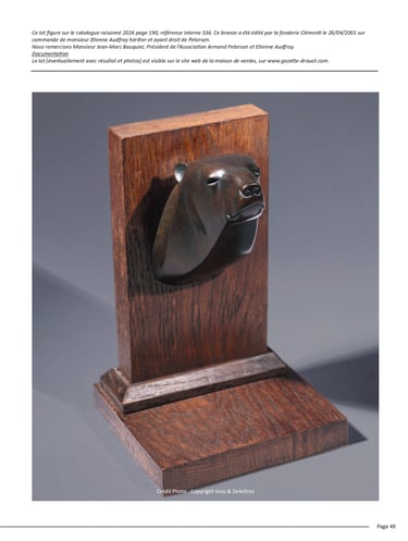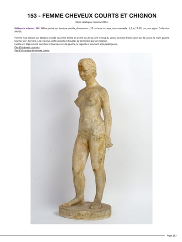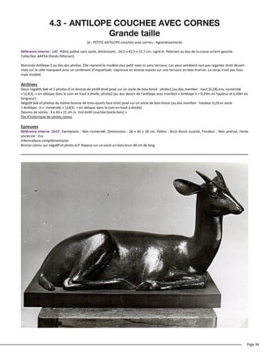 Notre référence interne de l’épreuve et éventuellement l’exemplaire, les dimensions, la patine, le fondeur, si c’est une épreuve ancienne ou post-mortem, des informations complémentaires personnelles spécifiques à l’épreuve.
