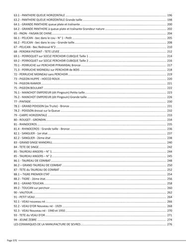 Les épreuves autres que celles présentes dans l’historique des ventes: Les épreuves connues par des photos du sculpteur, des articles de presse, la présence sur internet ou trouvées lors de recherches personnelles et qui ne font pas partie de celles présentées lors des ventes aux enchères avec :